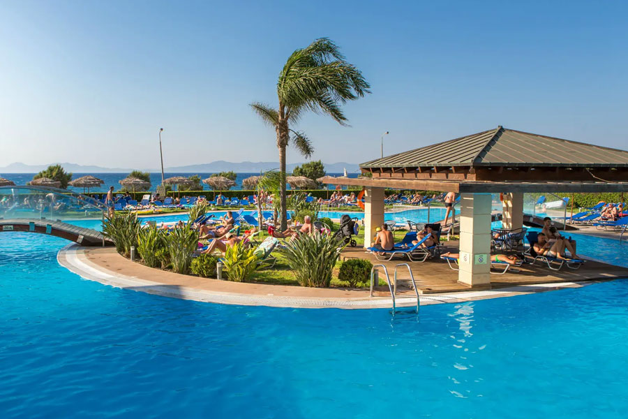 Oceanis Hotel er et populært hotel på Rhodos, beliggende med udsigt til havet og centralt i forhold til områdets aktiviteter. Hotellets absolutte hjerte og mødested for gæsterne er den fantastiske solterrasse med eventyrlig udsigt til havet. Her findes en imponerende swimmingpool med separat børnepool, liggestole og parasoller. Poolen er opbygget med en lille hyggelig ø i midten, hvor man finder et overdækket skyggeområde med stole og borde. Omgivelserne er i en klasse for sig med grønne områder og palmer. Overalt er der gjort meget ud af detaljerne, og hotellet er foretrukket blandt et stort antal stamgæster. Fra pool baren serveres kølige drinks og lette snacks, og der tilbydes et varieret underholdningsprogram.