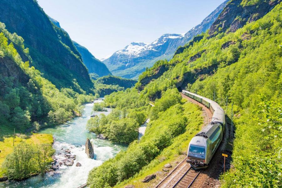 Dagen bliver turens højdepunkt. Vi skal fra Bergen via Gudvangen og Flåm til Geilo og benytte såvel bus som færge og tog gennem noget af Norges fineste natur. I løbet af turen kan vi sætte indtil flere flueben på Unescos Verdensarvsliste. Efter morgenmaden kører vi ind i landet til Gudvangen. På en sejltur skal vi opleve et af Norges mest populære fjordlandskaber. Vi går fra borde i Flåm, hvorfra turen går videre med tog ad den 20 km lange Flåmsbanen, som med 21 hårnålesving snor sig fra Myrdal til Flåm 867 meter længere nede - godt gemt i Aurlandsfjordens inderste hjørne. Denne imponerende jernbanestrækning markedsføres som "Norge i en nøddeskal”. Den er kåret som en af verdens mest betagende togrejser og er en af landets største turistattraktioner. Vi står af toget i Myrdal, hvortil eneste adgang er via jernbane eller ad vandre/cykelstier og skifter til toget mod Geilo. Her venter bussen og kører os til hotellet i Geilo, hvor vi slutter denne uforglemmelige dag med aftensmad.